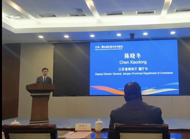 4月10日上午,江苏省商务厅领导与赞比亚国家代表团进行高层会晤,同时在省商务厅组织省内三十余家有意出海发展的重点企业,与赞比亚国家代表团开展专场交流座谈会,江苏省商务厅副厅长陈晓冬致欢迎词。